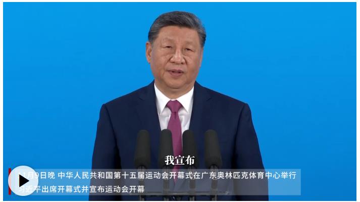 11月9日晚,中華人民共和國第十五屆運(yùn)動(dòng)會(huì)在廣東省廣州市隆重開幕。中共中央總書記、國家主席、中央軍委主席習(xí)近平出席開幕式并宣布運(yùn)動(dòng)會(huì)開幕。